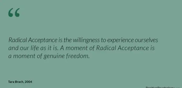 Radikalno sprejemanje je pripravljenost doživeti sebe in svoje življenje, kakršno je. Trenutek korenitega sprejemanja je trenutek pristne svobode.