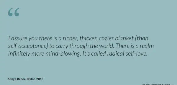 Zagotavljam vam, da obstaja bogatejša, debelejša, bolj zabavna odeja [kot samo-sprejemanje], ki jo je treba prenesti skozi svet. Obstaja kraljestvo neskončno bolj vznemirljivo. Imenuje se radikalna ljubezen.