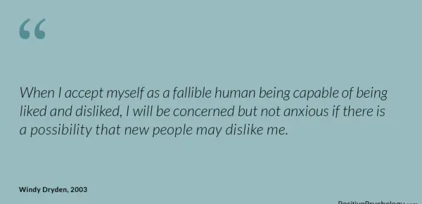 Ko se sprejmem kot brezhibno človeško bitje, ki je sposoben biti všeč in ne maram, bom zaskrbljen, vendar ne zaskrbljen, če obstaja možnost, da me novi ljudje morda ne marajo.