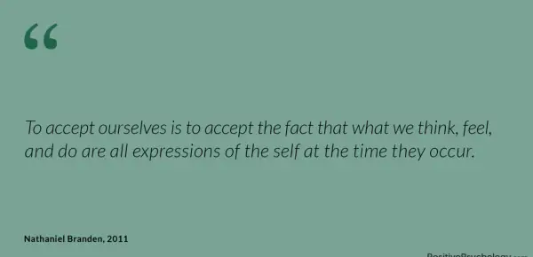 Sprejeti sebe pomeni sprejeti dejstvo, da to, kar mislimo, čutimo in počnemo, so vsi izrazi jaz v času, ko se pojavijo.