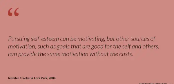 Sledenje samozavesti je lahko motivirajoče, vendar lahko drugi viri motivacije, kot so dobri cilji, ki so dobri zase in druge, brez stroškov zagotavljajo enako motivacijo.