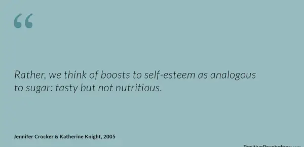 Namesto tega razmišljamo o povečanju samozavesti kot analognemu sladkorju: okusnega, a ne hranljivega.