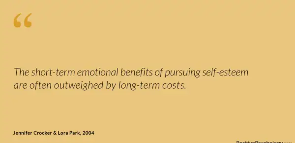 Posledično ima osredotočenost na samozavest v primerjavi s samoprejemanjem dolgoročne stroške. Na primer, samopodoba ogroža avtonomijo, tako da od osebe zahteva, da deluje v skladu s pritiskom, ki temelji na uspešnosti, ne pa notranje motivacije (Crocker