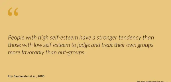 Ljudje z visoko samozavestjo imajo močnejšo težnjo kot tisti z nizko samozavestjo, da presojajo in obravnavajo lastne skupine ugodnejše kot zunaj skupine.