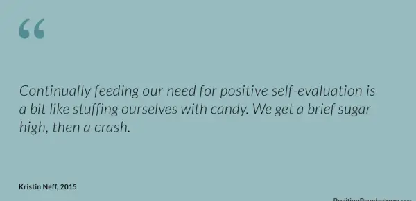 Nenehno hranjenje naše potrebe po pozitivni samoevalvaciji je nekoliko podobno polnjenju s sladkarijami. Dobimo kratek sladkor, nato pa se zruši.