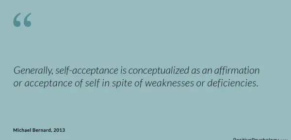 Na splošno je samoprejemanje kljub slabostim ali pomanjkljivostim konceptualizirano kot potrditev ali sprejemanje sebe.