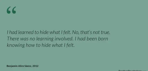 Naučil sem se skriti, kar sem čutil. Ne, to ni res. Ni bilo vključenega učenja. Rodil sem se, vedoč, kako skrivati, kar sem čutila.