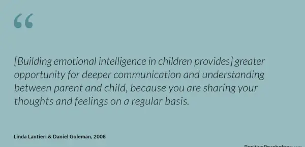 [Gradnja čustvene inteligence pri otrocih daje] večjo priložnost za globljo komunikacijo in razumevanje med staršem in otrokom, saj svoje misli in občutke redno delite.