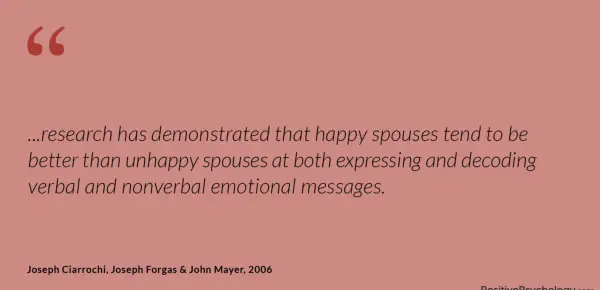 … Raziskave so pokazale, da so srečni zakonci ponavadi boljši od nesrečnih zakoncev tako pri izražanju kot pri dekodiranju verbalnih in neverbalnih čustvenih sporočil.