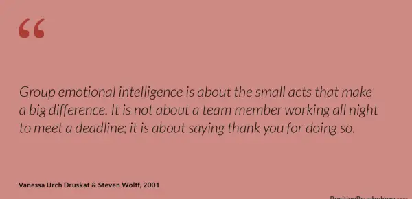 Skupinska čustvena inteligenca govori o majhnih dejanjih, ki zelo vplivajo. Ne gre za člana ekipe, ki dela vso noč, da bi izpolnil rok; Gre za zahvalo za to.