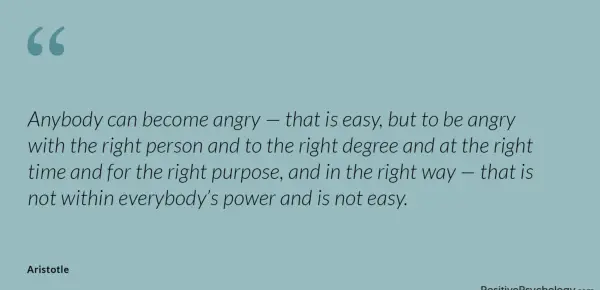 Kljub temu, da je živel leta 384 pred našim štetjem, je imel Aristotel nenavaden način razumevanja vprašanj, ki ostajajo danes vidna. Pogosto je govoril o jezi, saj je njegov drugi citat opisal zanimivo idejo: Ne samo, da je jeza sprejemljivo čustvo, ampak je tudi v nekaterih okoliščinah dejansko koristno. Medtem ko je verjel, da je jeza, da je darilo, je Aristotel tudi vedel, da obstajajo optimalni načini, kako čutiti, izraziti in upravljati jezo.