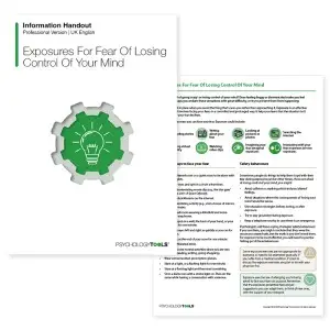 The Izpostavljenosti zaradi strahu pred izgubo nadzora nad svojim umom Izročitev informacij je zasnovana tako, da strankam in terapevtom pomaga prepoznati strašne dražljaje, razvijati hierarhije izpostavljenosti in načrtovati ustrezne vaje za izpostavljenost in vedenjske eksperimente. Vsebuje tudi informacije o vedenju, ki išče varnost, ki jih bo morda treba obravnavati med izpostavljenostjo.
