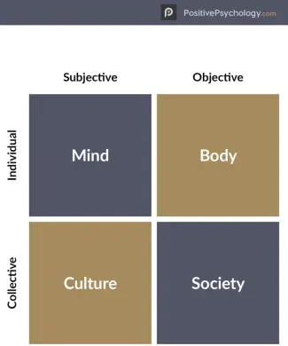 Na podlagi kolokacije dveh vidnih idej v psihologiji, subjektivizmu v primerjavi z objektivizmom in individualizmom v primerjavi z kolektivizmom, življenjski model identificira štiri stopnje, na katerih je mogoče razlagati dobro počutje, vključno z umom, telesom, kulturo in družbo (glej sliko 1).