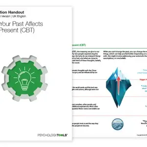The Kako vaša preteklost vpliva na vašo sedanjost HandOut je orodje za kognitivno vedenjsko terapijo (CBT), ki je namenjeno pomoči strankam razumeti medsebojno delovanje med njihovimi samodejnimi mislimi, predpostavkami in temeljnimi prepričanji. S pomočjo metafore ledene gore lahko stranke vizualizirajo, kako na te ravni spoznanja vplivajo zgodovinske in trenutne življenjske izkušnje. Ta vir podpira tako konceptualizacijske kot intervencijske faze terapije, ki ponuja vpogled v to, kako lahko pretekle interakcije oblikujejo sedanje miselne okvire.