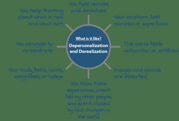V nekem trenutku svojega življenja (običajno ko so utrujeni ali kadar je njihovo telo ali um pod stresom), ima večina ljudi vsaj eno izkušnjo, da se počutijo od osamljenega od sebe ali iz sveta [1]. Občutek, ki se odmakne od sebe, se imenuje depersonalizacija: morda se počutite, kot da sanjate ali gledate sebe skozi kozarec. Občutek, ki se odmakne od sveta okoli vas, se imenuje derealizacija: svet se zdi neznan ali umeten.