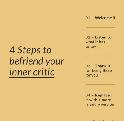 Ko naslednjič vaš notranji kritik poziva k vaši pozornosti, se poskusite spoprijateljiti, namesto da bi se ignorirali ali borili.