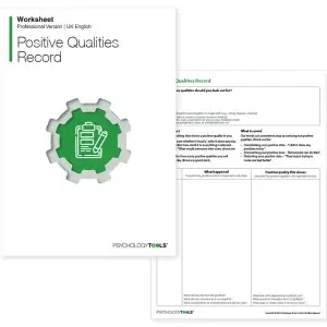 Negativna prepričanja in pozorne pristranskosti lahko zasenčijo prepoznavanje osebnih prednosti in dosežkov. Ta delovni list vodi stranke pri dokumentiranju njihovih pozitivnih lastnosti in pomaga pri boju proti izkrivljenim samo-dojemanjem. Z vsakodnevnim snemanjem in razmišljanjem si stranke prizadevajo za popravljanje pristranskosti obdelave informacij in graditi pozitivna prepričanja o sebi. The Rekord pozitivnih lastnosti se uskladi s terapevtskimi cilji s spodbujanjem bolj uravnoteženega samopogled.