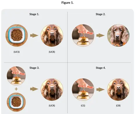 Pavlov je spoznal, da je ta odziv sline refleksivno vedenje, ki je bilo s predstavitev hrane pogojeno s ponavljajočimi se pari nevtralnih dražljajev (kot je zvok zvona). Nevtralni dražljaj je označil za kondicionirani dražljaj in slinjenje kot pogojen odziv (Pavlov, 1904).