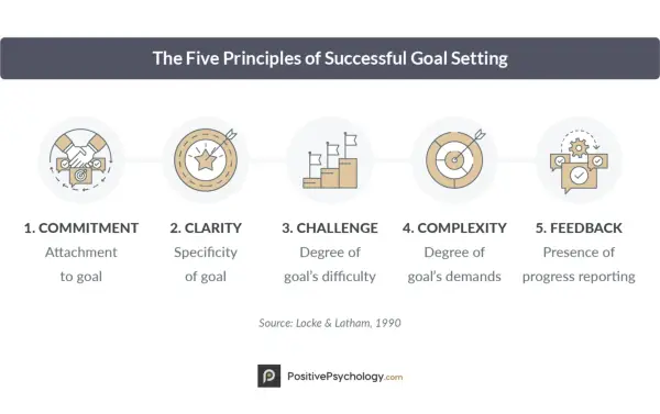 Locke in Latham sta predlagala pet ključnih načel za uspešen dosežek ciljev (Locke
