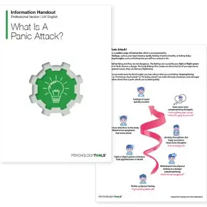 Panični napadi so enojne epizode intenzivnega strahu ali nelagodja, ki se začnejo nenadoma in dosežejo vrh v nekaj minutah. Kognitivni vedenjski model panike kaže, da napačno razlaga benignih telesnih simptomov kot grožnje vodi do aktiviranja sistema boja ali letenja, kar lahko poslabša intenzivnost paničnih simptomov. Ta izobraževalni izročitev prikazuje značilno zaporedje stopnjevanja paničnih napadov.